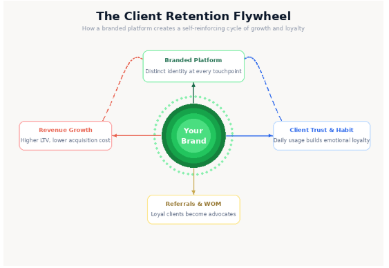 ✔ Emotional brand attachment. When clients use “your” platform every day — with your name, your design, your personality — they develop a relationship with your brand, not with an interchangeable commodity.